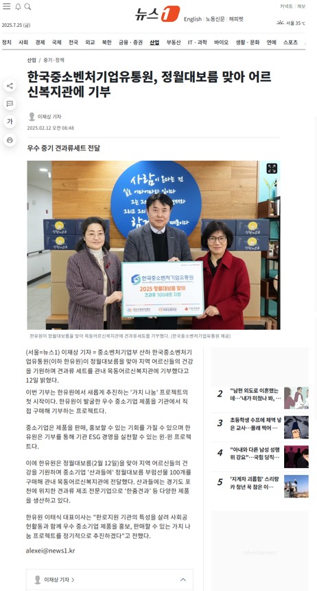 한국중소벤처기업유통원, 정월대보름 맞아 어르신복지관에 기부